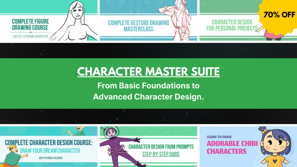 The ultimate toolkit for character artists. Includes 9 essential courses covering Figure Drawing, Chibi, Gestures, and Character Design.